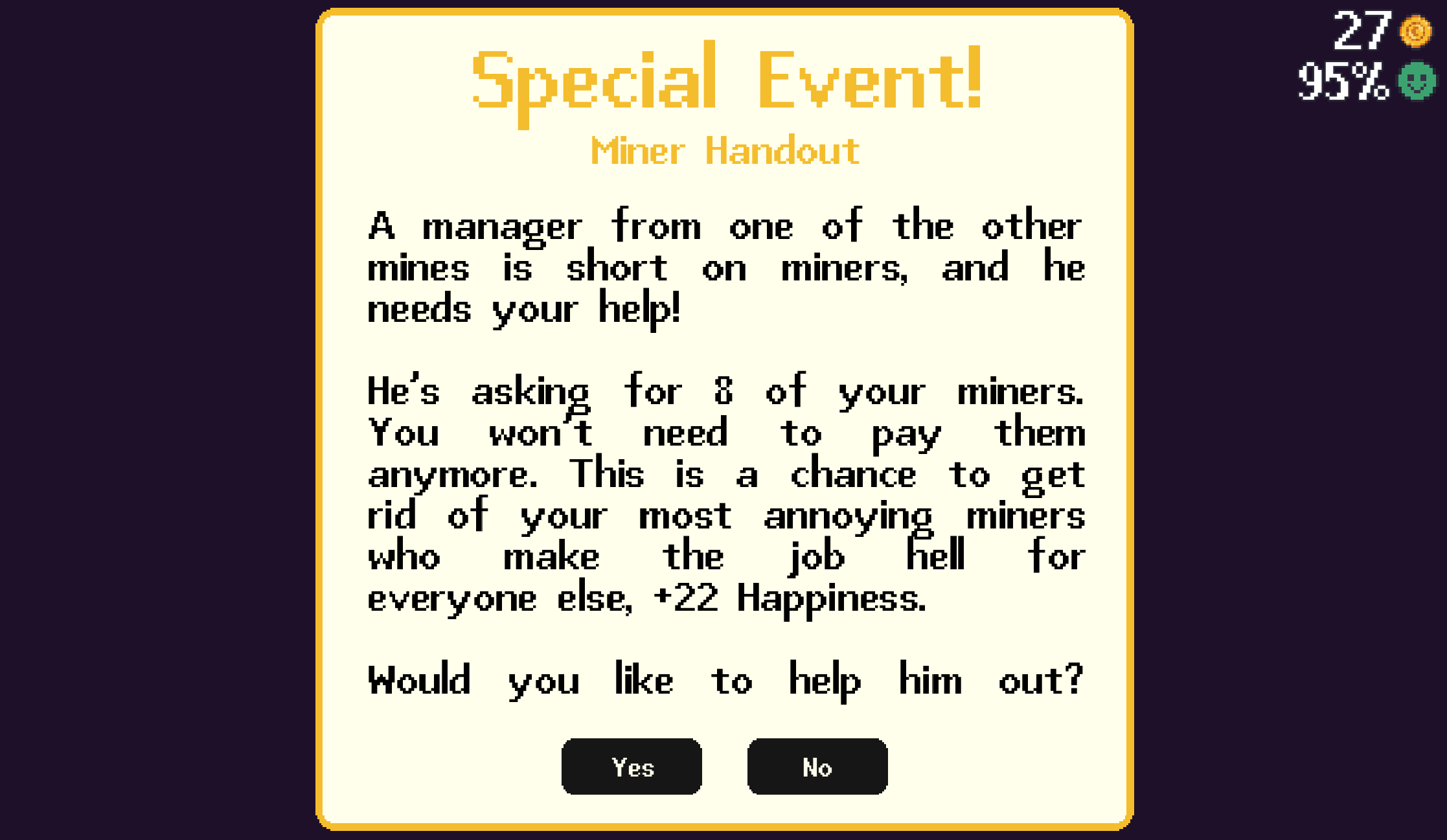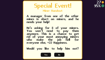 Low Happiness - Miners work slower and have a chance to steal some of your precious gold.